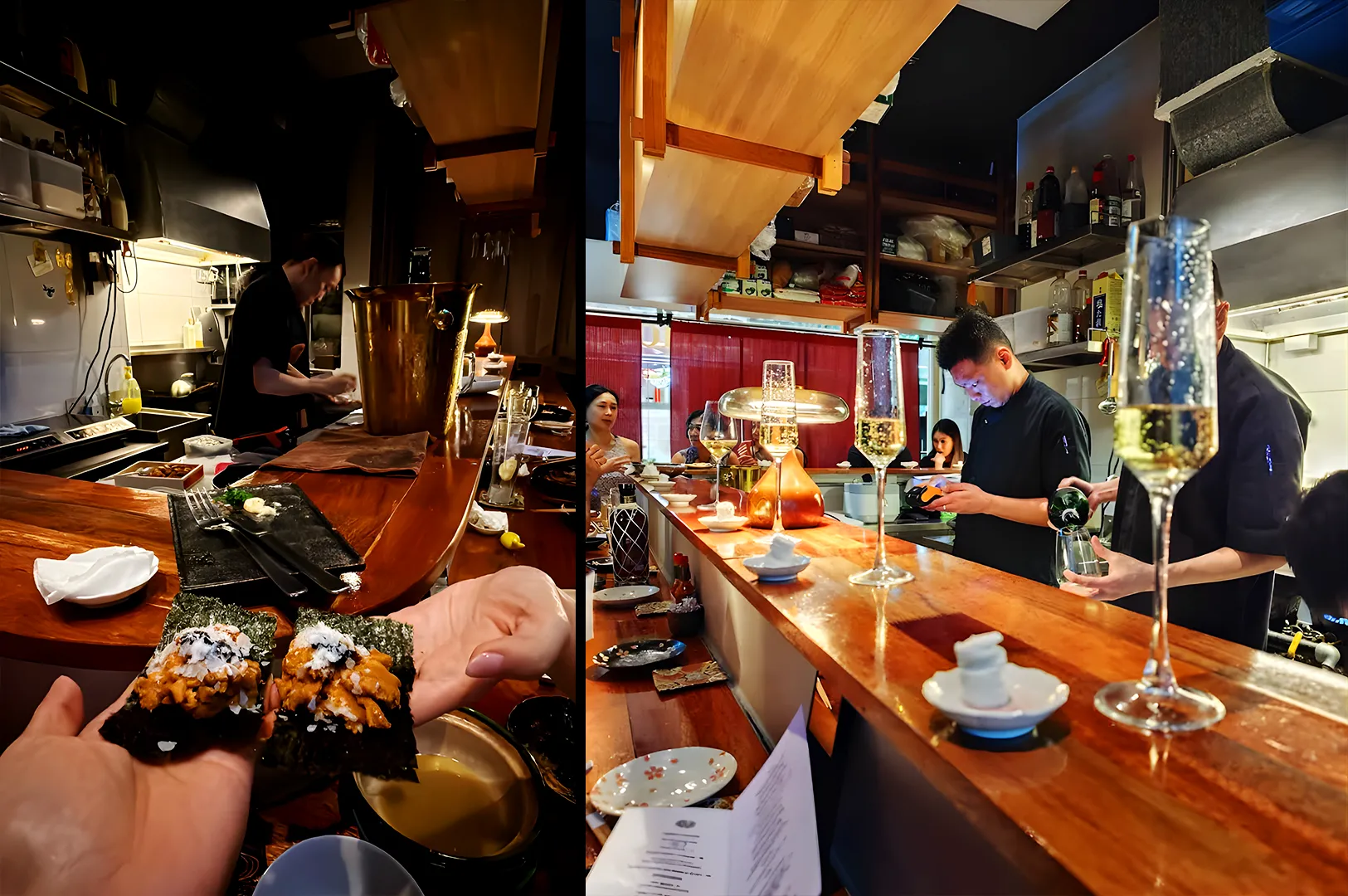 If you are claustrophobic, this might not be your favorite place. The entire izakaya only holds about 18 to 20 seats, consisting mostly of a compact bar counter and a few small tables. The interior is clad in dark wood, reminiscent of a traditional Japanese house, with dim, warm lighting that immediately sets a relaxed, late-evening drinking mood. It feels incredibly cozy and intimate, like a secret clubhouse for regulars and tenants who know exactly where to go.